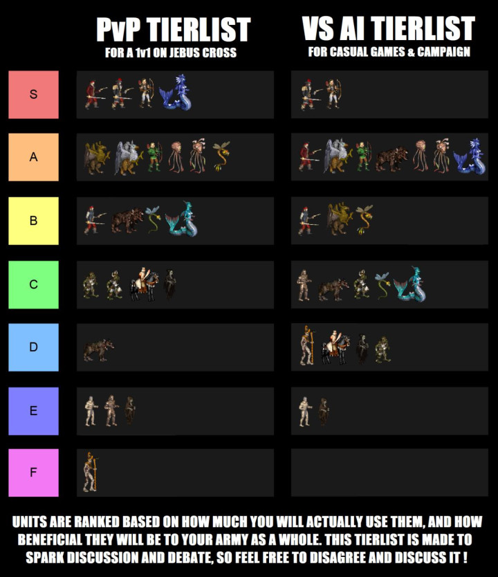 “特技族”各等级兵种特性如下: