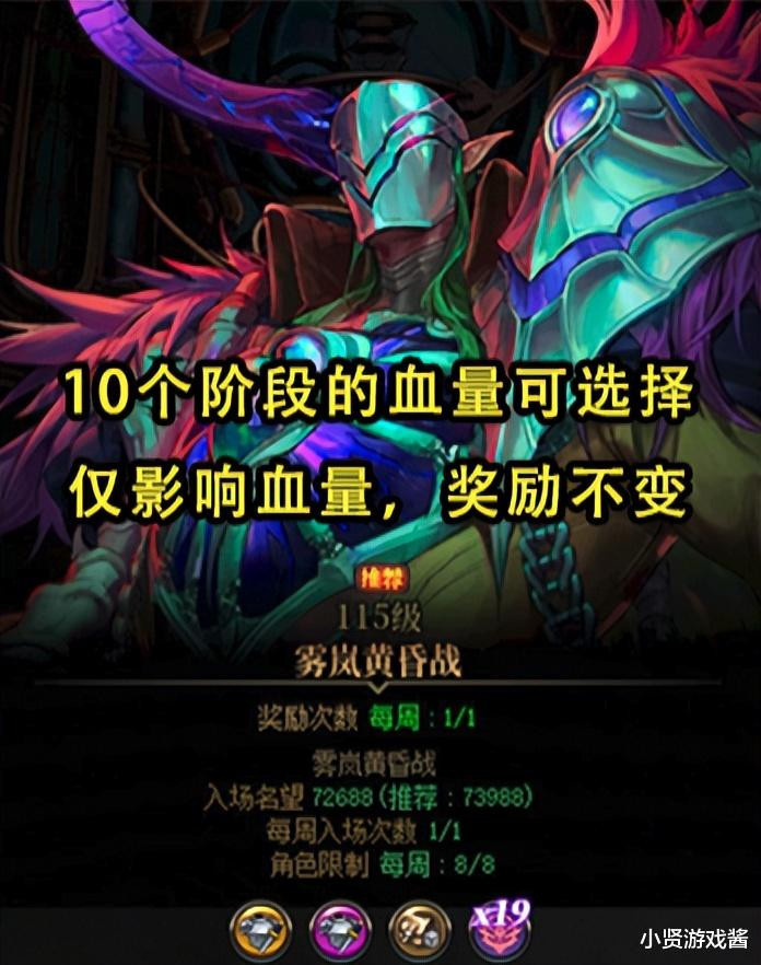 新团本雾岚攻坚战放,主要有2个地方进行了特色化!一是加入生命值倍率调整功能,最多有10个阶段可供选择挑战,类似于维纳斯的10倍血量,仅会影响血量,奖励则不变,适合伤害高的C去挑战。