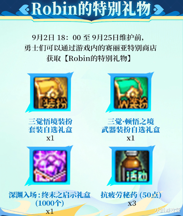 首先,就小礼物而言,还是挺到位的,虽然没有转职书、史诗跨界石这些极品道具,但是有三觉套、三觉武器装扮、1000张深渊票,以及3瓶50疲劳药,已经是相当给力了,大家在9.2号的18点就可以领取。
