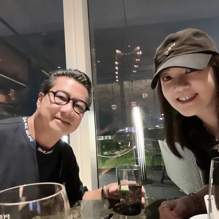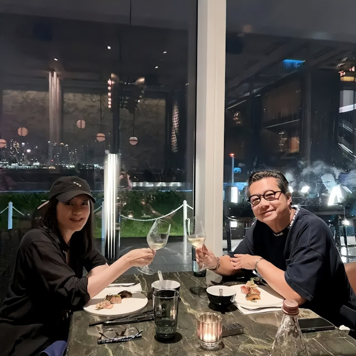 不过令人惊讶的是,坐在他对面、头戴黑色棒球帽的刘倩怡,样貌和年轻时期相比变化不大,皮肤紧致,冻龄有方法,完全不像即将步入 60 岁的人。夫妻俩在美丽的维多利亚港夜景下,对着镜头举杯庆祝,十分恩爱!