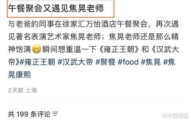 据悉,当天焦晃并没有带妻子,结合其早前的腿脚状况来分析,他之所以现身餐厅,应该是老友带着他,且对方的身体状况应该比他好,起码腿脚方面不用操心。