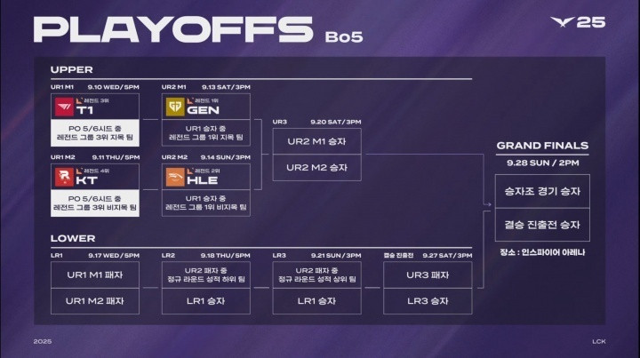 今年LCK季后赛的规则与往年有点不同,取消了积分制,也没有了冒泡赛,而是直接由季后赛的前四名队伍获得S15世界赛的四张门票,并且根据排名分配1-4号种子。