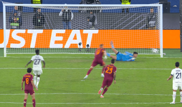 罗马在第85分钟获得了一粒点球,但多夫比克主罚的点球被里尔门将厄泽尔扑出。