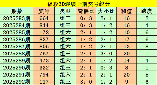 上期回顾:福彩3D第2025292期奖号:117。组三、小小大、奇奇奇。